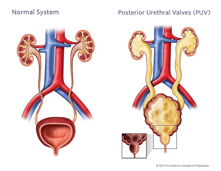 نمای شماتیک دریچه پیشابراه خلفی و سیستم ادراری نرمال