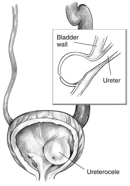 اتساع بادکنکی محل اتصال حالب به مثانه ( یورتروسل [ureterocele])، حالب نابجا، سیستم جمع کننده دوگانه ( دوپلکس [duplex])، مجموعأ 7-5%؛ و